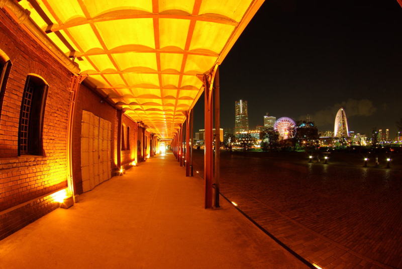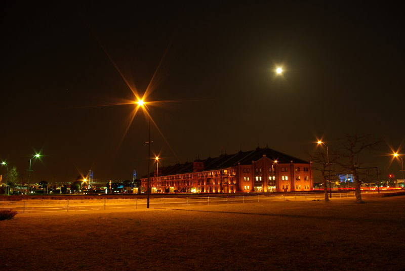 満月の赤レンガ倉庫